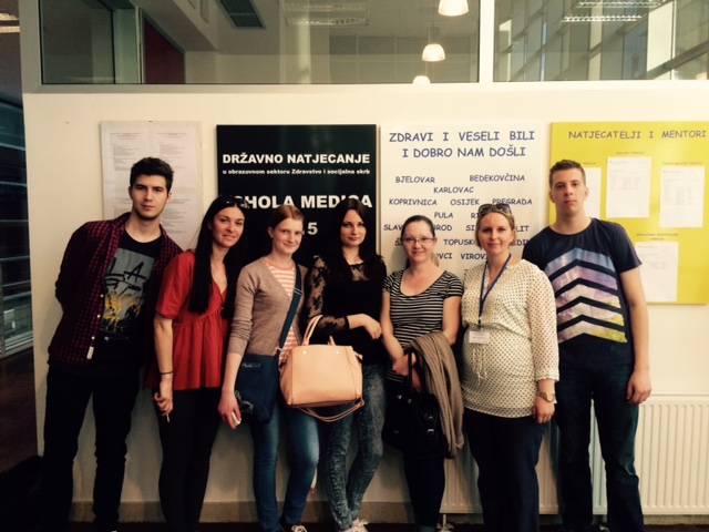 Dana 22. trvanja 2015. godine Danijel Krampek, Dorotea Žugec, Mihael Peharda i Natalija Trtinjak sa svojim mentorima nast. Ksenijom Janjušević,  nast. Ivom Delonga Habek, nast.  Marijom Držanić Topčagić i prof. Natašom Vuković putovali smo iz Varaždina za Split na državno natjecanje Schola medica 2015.