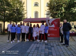 Naši učenici 3. c razreda smjera zdravstveno-laboratorijski tehničar/ka Ines Lončar, Tin Puškadija, Terezija Šamuga, Marina Sanković, pod vodstvom profesorice Nataše Vuković, te učenici 5. a razreda smjera medicinska sestra /tehničar opće njege tena Pačalat, veronika Poljak , Helena Posavec, Mateo Rožmarić, Tomotej Šredel, Neven Tkalčec i Mihael Vinceković, pod vodstvom profesorice Ive Delonga Habek, sa zadovoljstvom su podržali rad Udruge obilježivši Svjetski dan KML-a .