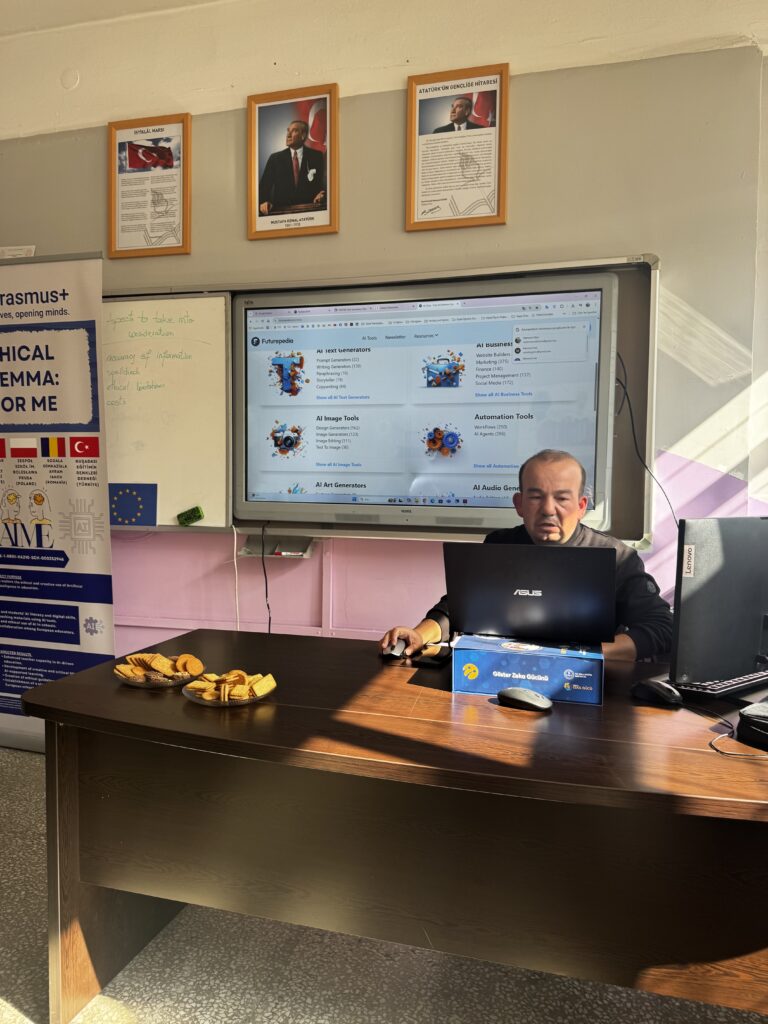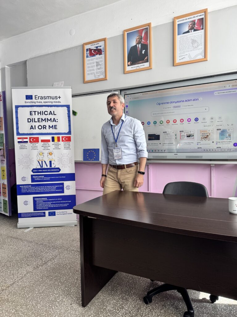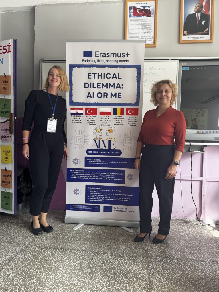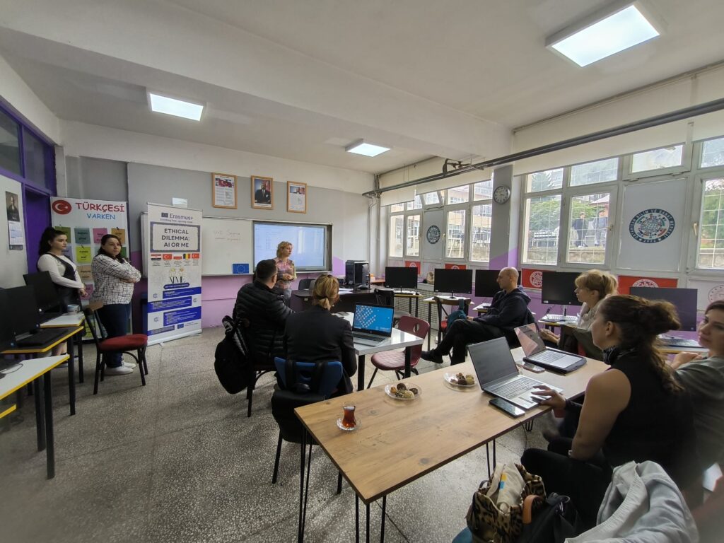 U Erasmus+ tjednu od 13. do 17. listopada 2025. u centru za obrazovanje darovitih učenika Ortahisar Bilim ve Sanat Merkezi u turskom gradu Trabzonu održana je prva mobilnost nastavnika u sklopu projekta Ethical dilemma: AI or me? (205-1-HR01-KA210-SCH-000352946) s ciljem jačanja kompetencija za poučavanje s pomoću alata umjetne inteligencije i zajedničkog oblikovanja prikladnih didaktičkih materijala namijenjenih odlikovanju scenarija poučavanja kreativnog pisanja uz ljudski nadziranu uporabu alata generativne AI.