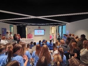 Nakon radionice uslijedilo je predavanje učenica 4. a razreda Lucije Ivančić i Lane Jalšić pod mentorstvom nastavnika Luke Đurana na temu Gušenje stranim tijelom kod odraslih i djece. Učenice su u vrlo zanimljivom i jasnom izlaganju prikazale najčešće uzroke gušenja te istaknule važnost pravodobne i pravilne reakcije u takvim situacijama. Poseban naglasak stavljen je na prepoznavanje simptoma gušenja i pravilnu primjenu postupaka pomoći, poput Heimlichova zahvata.