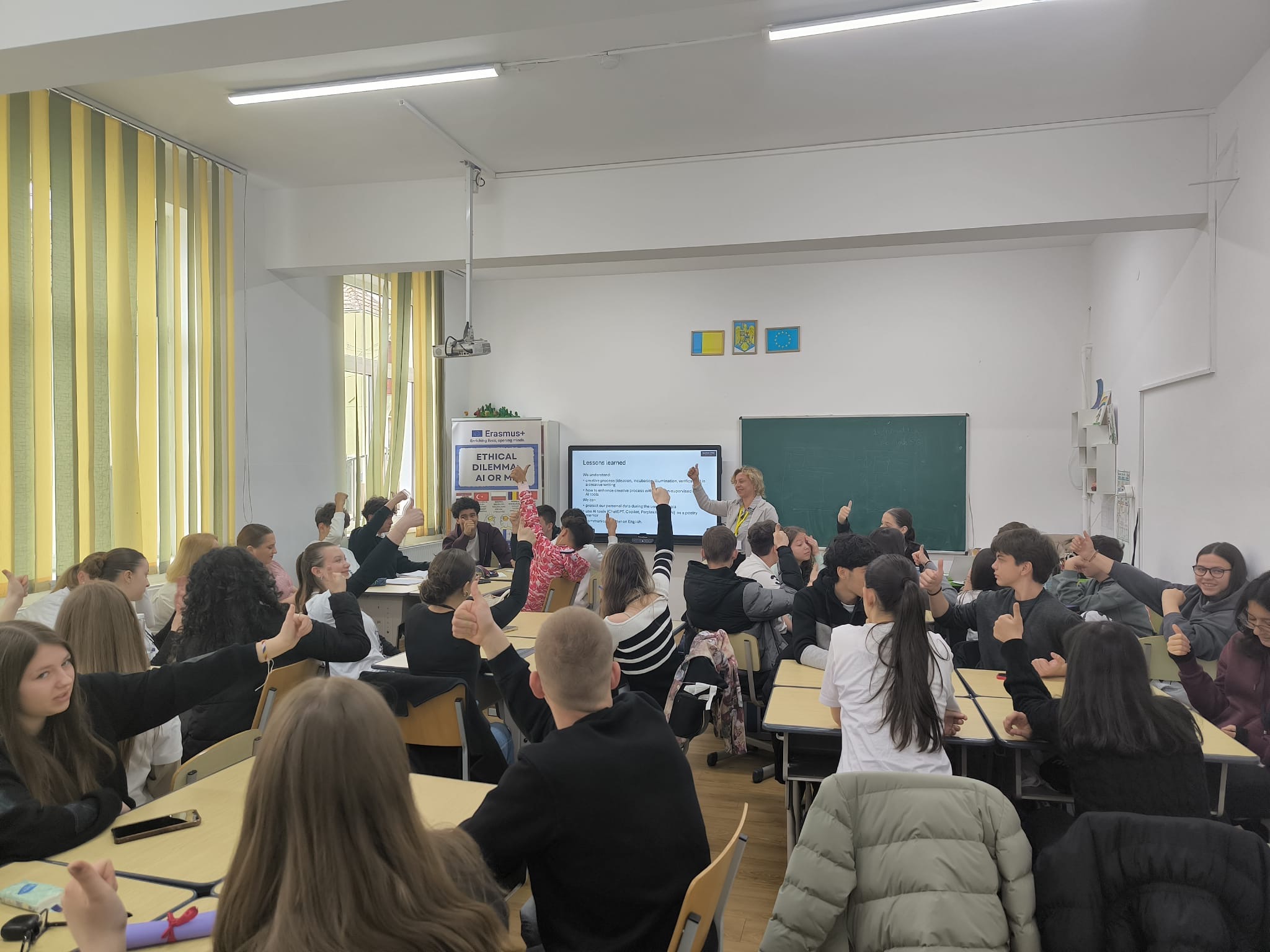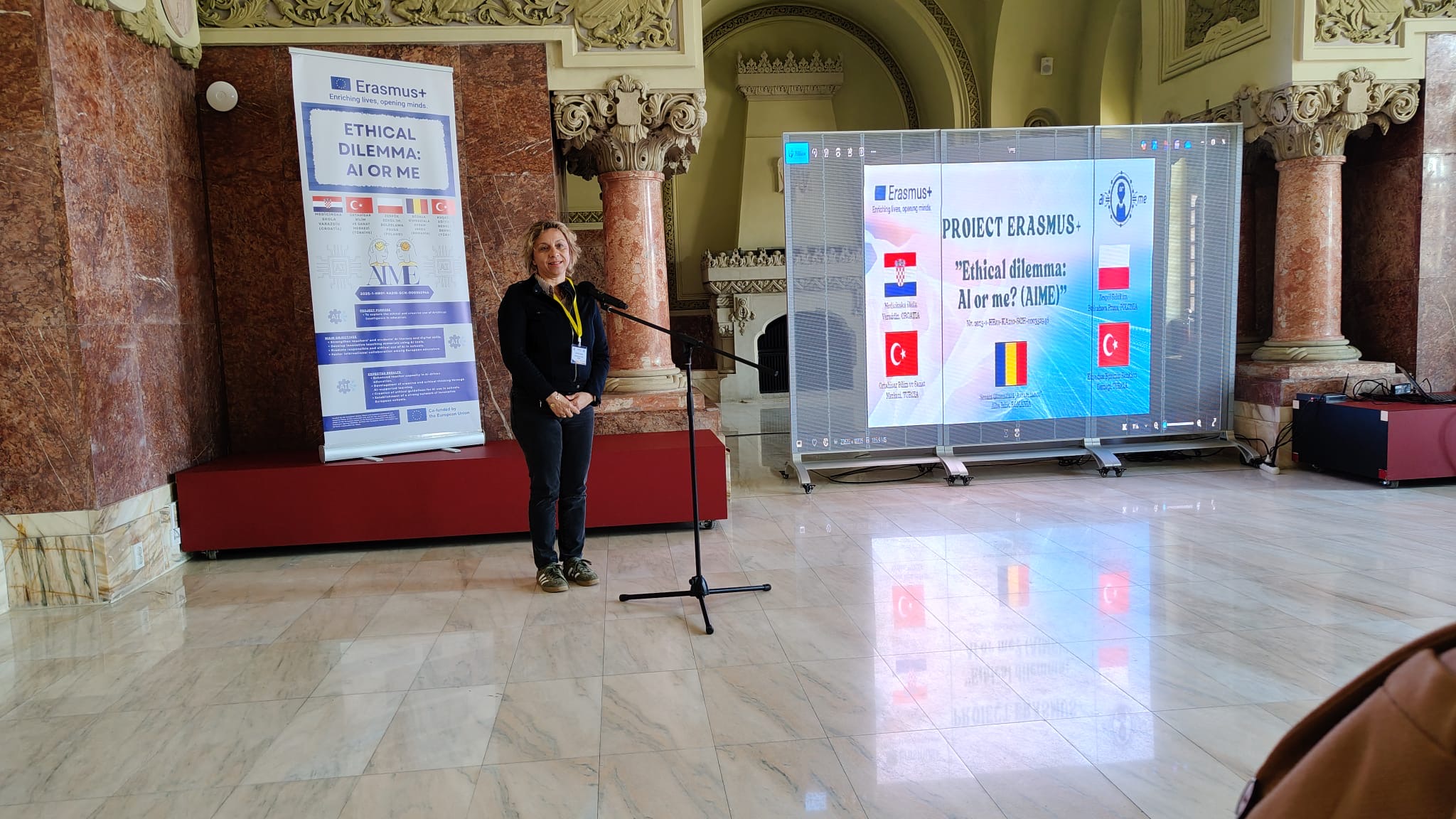 Druga projektna aktivnosti u sklopu projekta „Ethical dilemma: AI or me“ (AIME) odvijala se od 16. do 20. ožujka 2026. godine u povijesnoj prijestolnici Rumunjske, transilvanijskome gradu Alba Iula, odnosno u partnerskoj osnovnoj školi Scoala Gimnaziala „Avram Iancu“. U aktivnosti su uz voditeljicu projekta prof. Natašu Sajko i članicu projektnog tima prof. Jadranku Težački iz naše škole sudjelovale učenice, mlade i dokazane pjesnikinje: Mirela Zeljar (3, e) , Lorena Oštrek (3. d) , Laura Božić, Erin Bobetić i Tesa Majhen (2. e). Iz ostalih partnerskih institucija iz Turske i Poljske stigle je još deset učenika i sedam nastavnika pa je sveukupno na aktivnosti sudjelovalo pedesetak učenika i nastavnika.