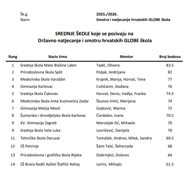 Naše učenice Paula Bosilj, Eva Friščić i Helena Mihalina pod mentorstvom profesorica Marije Krajnik i Tene Horvat, ostvarile izvrstan uspjeh na 22. međužupanijska smotra i natjecanje hrvatskih GLOBE škola.
