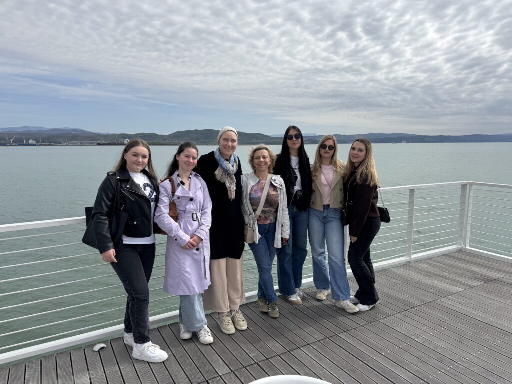 Od 8. do 14. travnja 2026. godine učenice Vanesa Dragić, Antonija Golec, Tamara Gazdić, Gita Šantek i Helena Težak sudjelovale su u grupnoj mobilnosti učenika u sklopu Erasmus+ projekta „Otvorenim umom do zdravog srca“ u gradu Monfalconeu u sjevernoj talijanskoj pograničnoj pokrajini Furlaniji. Ugostili su ih s voditeljicom i projektnom koordinatoricom Natašom Sajko domaćini iz neprofitne organizacije “School of Peace FVG” iz Staranzana. Riječ je o udruzi posvećenoj radu s djecom i mladima prema suvremenim didaktičkim i metodičkim načelima Montessori pedagogije koju uspješno vodi direktorica Hassena Barbana.