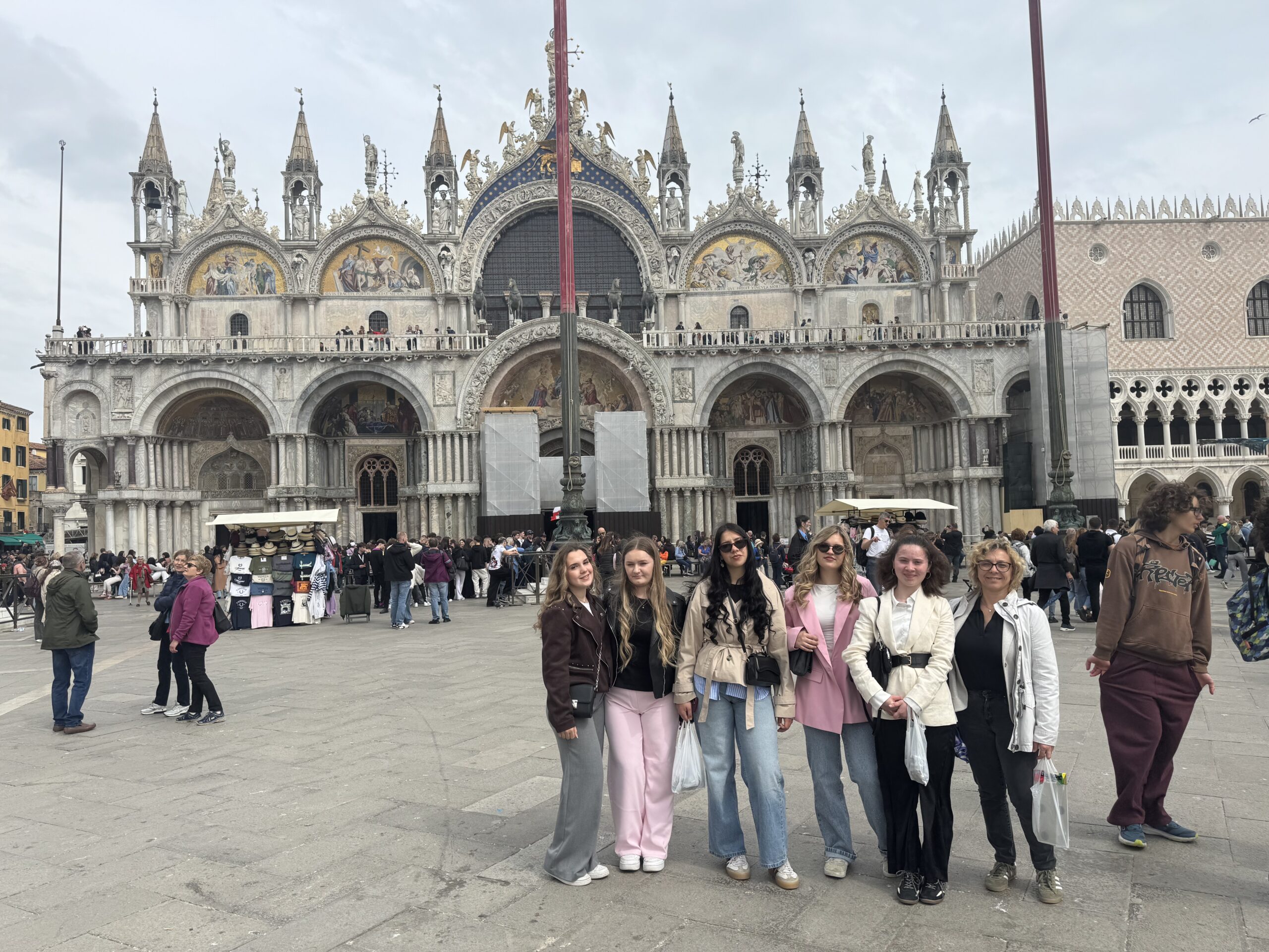 U ponedjeljak smo se uputili u predivnu Veneciju. Putovali smo vlakom te smo gledale putem ljepotu Italije, kada smo napokon stigli u Veneciju prvo smo se uputili u židovsku četvrt, i vidjeti prvi europski geto. Putem smo razgledale barokne crkve s Tiepolovim freskama Chiesa di Santa Maria di Nazareth i Santuratio di Lucia. Obe crkve su nas očarale svojom ljepotom, građom i detaljima.Većinu našeg izleta proveli smo u društvu naših prijatelja iz Škole mira istraživajući prekrasne ulice Venecije te smo se odlučili povozati najvećom turističkom atrakcijom- gondolom. Vozile smo se po Canalu Grade i nastavile šetnju uz povijesne tržnice voća i ribe. Nakon malog pedaha za ručak nastavile smo razgledavanjem i uputile se Trgu sv. Marka koji nas je impresionirao u prvom redu bazilikom, satnom kulom i tornjem te Duždevom palačom te slavnom kavanom Florian gdje je naravno svirao violinist. Uz most uzdisaja snimljene su mnogobrojne fotografije uz priču o Casanovinu bijegu iz tamnice.