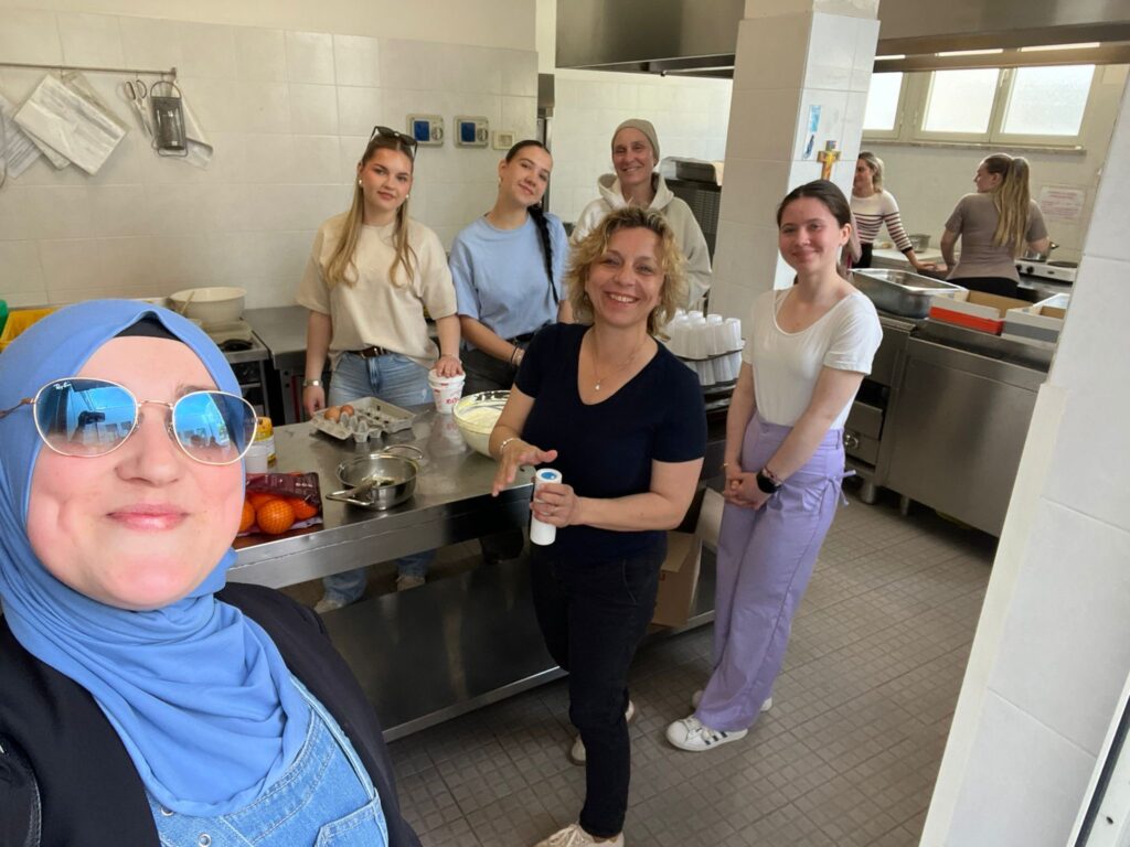 Svi su nevjerojatno ljubazni, otvoreni i spremni za suradnju. Razmjenjivali smo ideje, smijali se zajedno i puno naučili jedni od drugih. Nakon toga, otišli smo u Školu mira u Monfalcone gdje smo pripremale tradicionalnu hrvatsku hranu: varaždinske klipiće, zagorske štrukle i čupavce. Bilo je lijepo iskustvo kuhati zajedno s polaznicama popodnevne škole i dijeliti dio naše kulture. Nakon što je hrana bila gotova, poslužile smo je učenicima i njihovim roditeljima. Bilo je sjajno vidjeti ih kako uživaju u njoj.