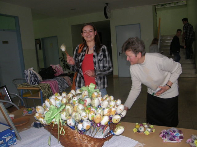Uime Udruge, voditeljica radionice Biserka Kutnjak i stručna suradnica odgajateljica Andreja Macan predstavile su nam radove svojih štićenika. Po prigodnim su se cijenama prodavali ručno izrađeni tepisi, nakit i torbice, a nadolazeći je Uskrs obilježen prodajom pisanica i uskršnjih košarica.