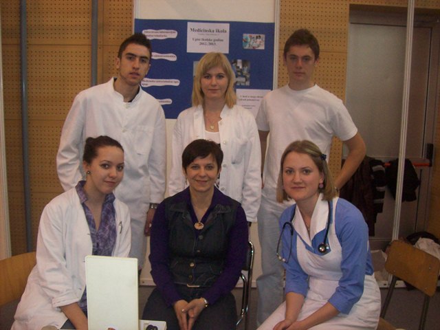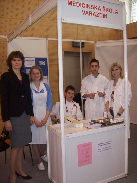 U dvorani Gospodarske škole, u petak, 23. ožujka 2012. održan je peti po redu Sajam poslova Varaždinske županije. Uz izlagače poslodavce, partnere i udruge, sudjelovale su i obrazovne ustanove, a među njima i Medicinska škola Varaždin. Posjetiteljima smo besplatno mjerili krvni tlak i GUK, a sve zainteresirane uputili u program škole i upise za nadolazeću školsku godinu. Smjer medicinska sestra/tehničar su pod vodstvom nast. Marijane Dugi predstavljali Vladimir Čemerika i Ivana Novak, a zdravstveno – laboratorijske tehničare Danijela Lončarić, Maja Horvat i Kristijan Blaži u vodstvu prof. Nataše Vuković. Nadamo se da smo svojom marljivošću, susretljivošću i smiješkom uvjerili organizatore da njihovi gosti budemo i slijedeće godine!