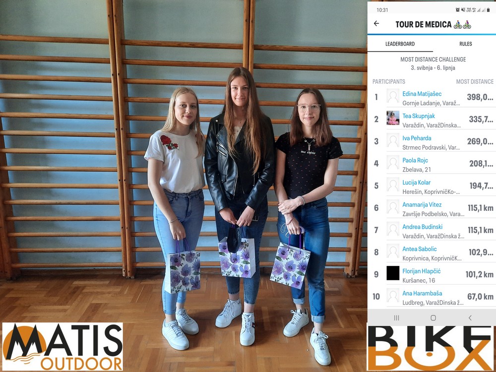 Obzirom da smo ove školske godine dobar dio nastave zbog epidemiološke situacije proveli u online uvjetima, to nije spriječilo da naši učenici pokažu svoju aktivnost i sudjelovanje u ovom projektu. Obzirom da se i nastava TZK odvijala u online uvjetima putem raznim aplikacija za kretanje, jedna od najkorištenijih bila je Under Armourova Map My Run. Ta aplikacija omogućila nam je da samo bicikliranje osmislimo kao izazov – challenge (Tour de Medica), koji je bilo moguće pratiti putem skale na samoj aplikaciji. Učenici su tako tokom čitavog trajanja projekta mogli vidjeti svoj plasman na temelju prijeđenih km. Ujedno su još jednom pokazali svoj „multitasking“ uz istovremeno sudjelovanje u projektu i izvršavanje zadataka-zadaća za TZK u online uvjetima.