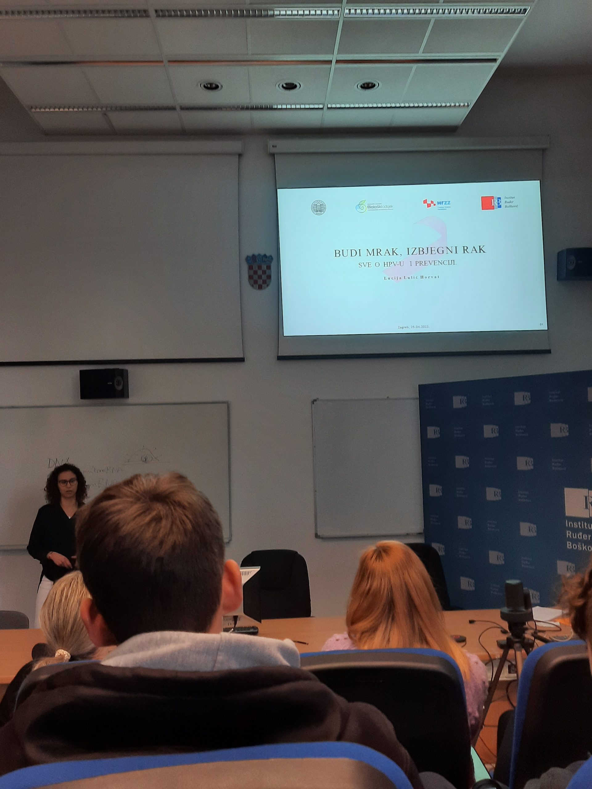 Na Institutu ih je dočekala dr. sc. Andreja Ambriović Ristov koja im je predstavila ustanovu i upoznala ih s istraživanjima koja se provode u području molekularne biologije. Tijekom posjeta učenici su poslušali četiri predavanja koja su pripremile zaposlenice Zavoda za molekularnu biologiju Marija Lončarić, Anja Rac Justament, Lucija Lulić Horvat, Margareta Pernar Kovač i Vanja Tadić. Predavanja su bila usmjerena na općenita istraživanja u molekularnoj biologiji, način pripreme stanične kulture te uzgajanje organoida za istraživanja. Posebno zanimljivo predavanje bilo je o raku jajnika i HPV virusu koje su učenici slušali s velikim zanimanjem.