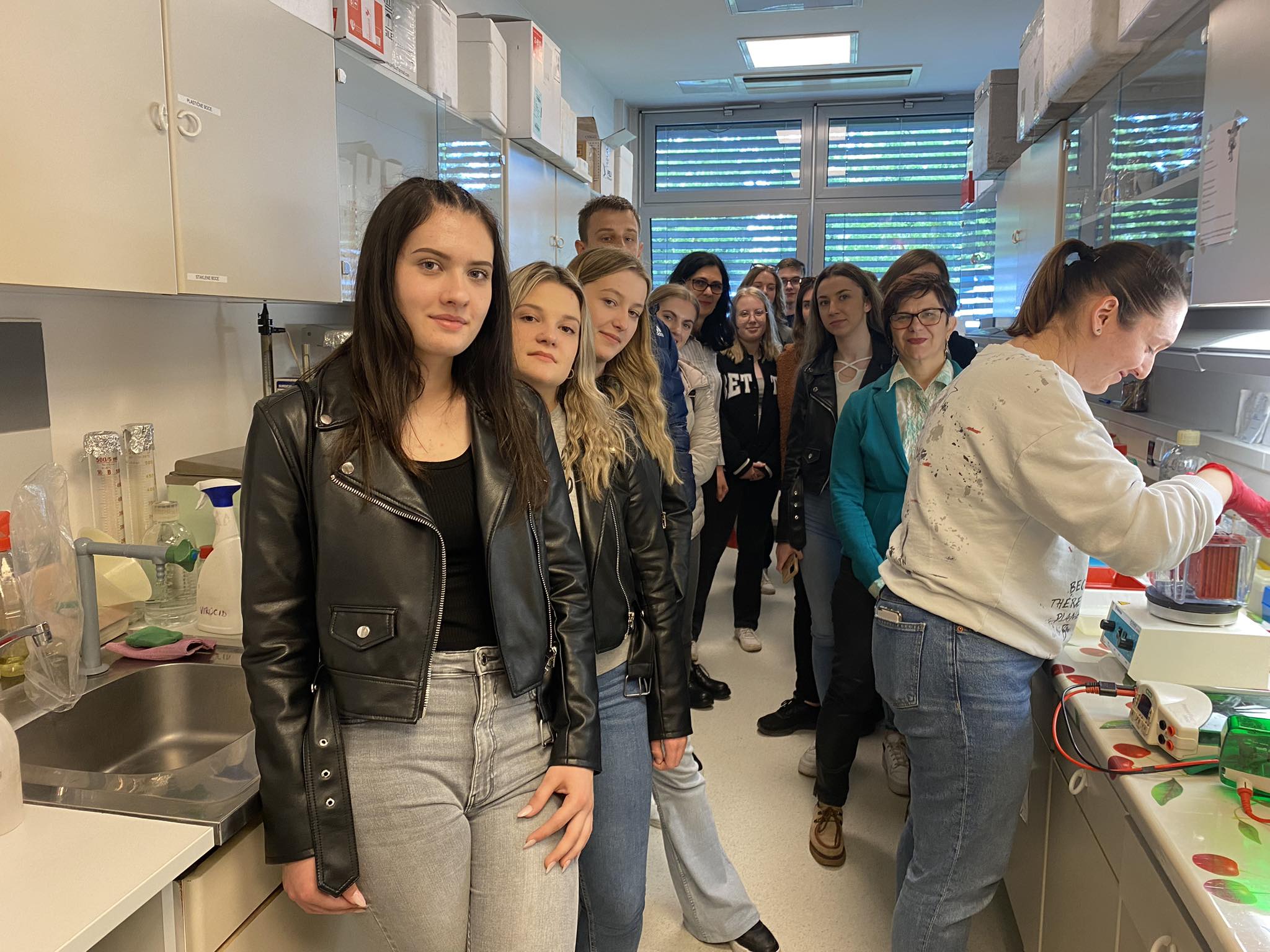 Nakon predavanja učenici su obišli Laboratorij za staničnu biologiju i prijenos signala. Tijekom obilaska doznali su više o opremi kojom se koriste u laboratoriju te o načinu rada u istom. Učenici su s posebnim interesom pratili rad znanstvenika te su također vidjeli prostorije u kojima se istražuju novi lijekovi za liječenje melanoma, raka jajnika te gdje nastaju ostala nova otkrića.